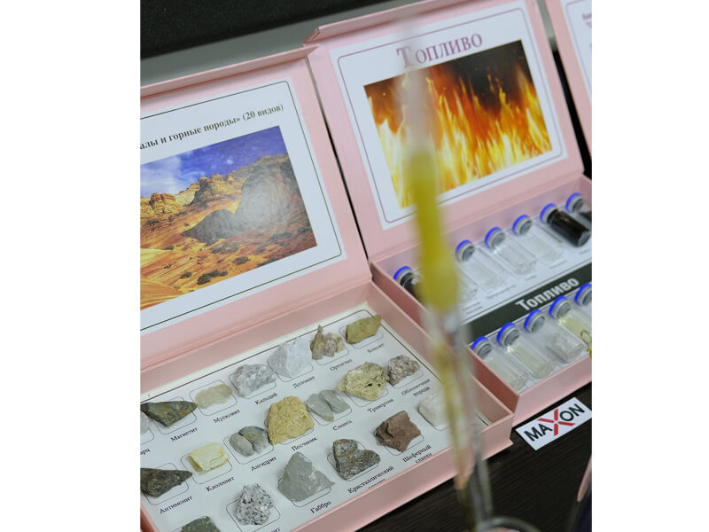 Коллекция «Топливо» содержит следующие образцы:1. Нефть 2. Каменный уголь 3. Кокс 4. Природный газ 5. Торф 6. Дерево 7. Мазут 8. Бензин 9. Керосин 10. Соляр 11. Газойль 12. Водород 13. Кислород 14. Ракетное топливо (иммитация) 15. Окислитель.