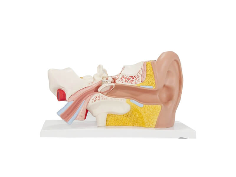 • Модель является разборной, изображает ухо человека в разрезе, демонстрирует строение слухового и вестибулярного аппаратов.