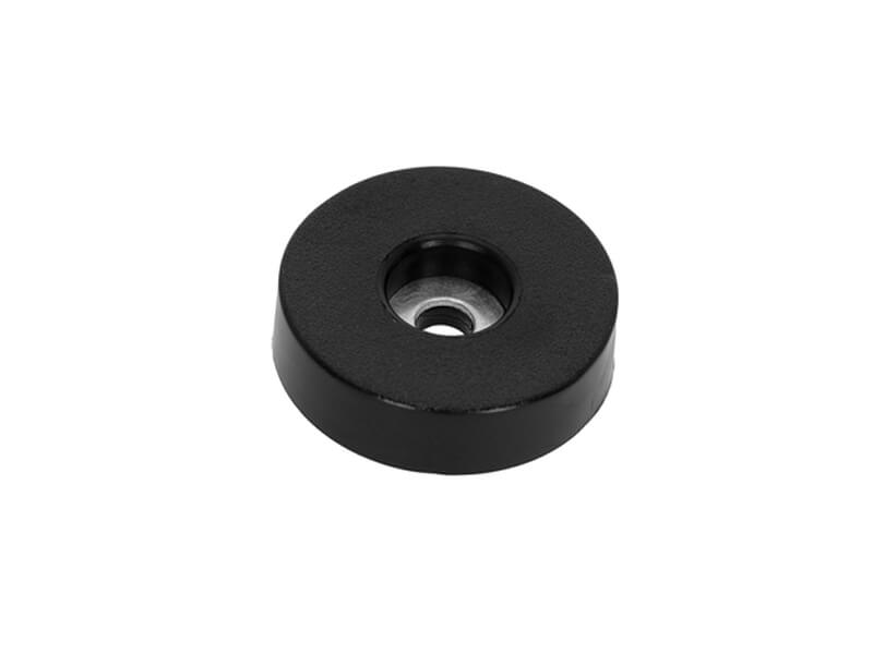 • Круглая резиновая ножка диаметром 38 мм и высотой 15 мм, выполнена из мягкого ПВХ с полипропиленовым сердечником. Оснащена утопленным стальным диском и монтажным отверстием 6,4 мм, предназначена для установки на аудиооборудование и кейсы. Вес 0,022 кг.